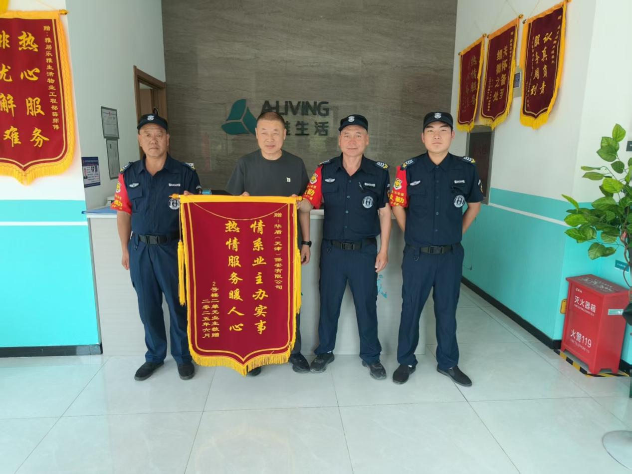 从日常的桌椅搬运,到专业的重型设备装卸;从受伤仍坚守岗位,到面对感谢坚守纪律底线,华盾保安团队用行动诠释着 “服务至上,恪尽职守” 的工作理念。这面锦旗,不仅是业主对他们的认可,更是他们践行初心的见证。未来,华盾保安团队将继续以专业与热忱,守护小区的每一份安宁,书写更多温暖人心的服务篇章。
