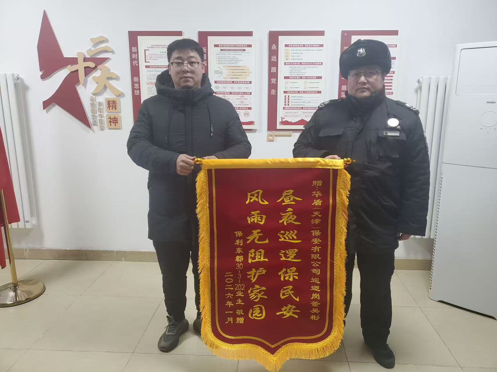 近日,一面印着“昼夜巡逻保民安,风雨无阻护家园”的鲜红锦旗,被汉沽某项目业主郑重送到华盾保安驻场团队手中,这份沉甸甸的认可,专属保安员董吴彬。没有惊天动地的壮举,只有日复一日的坚守,他用脚步丈量责任,用执着守护安宁,成为业主心中最可靠的“平安后盾”。
