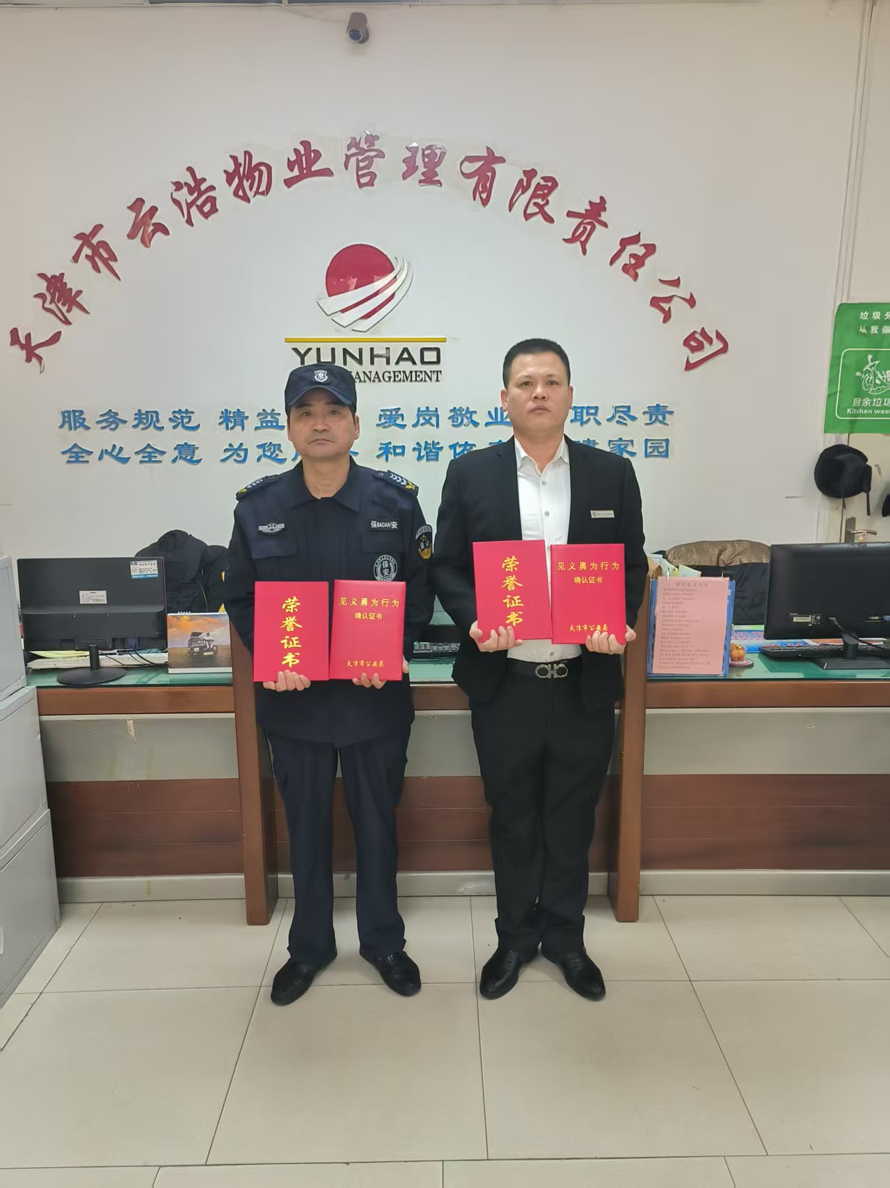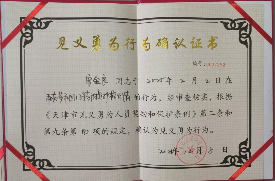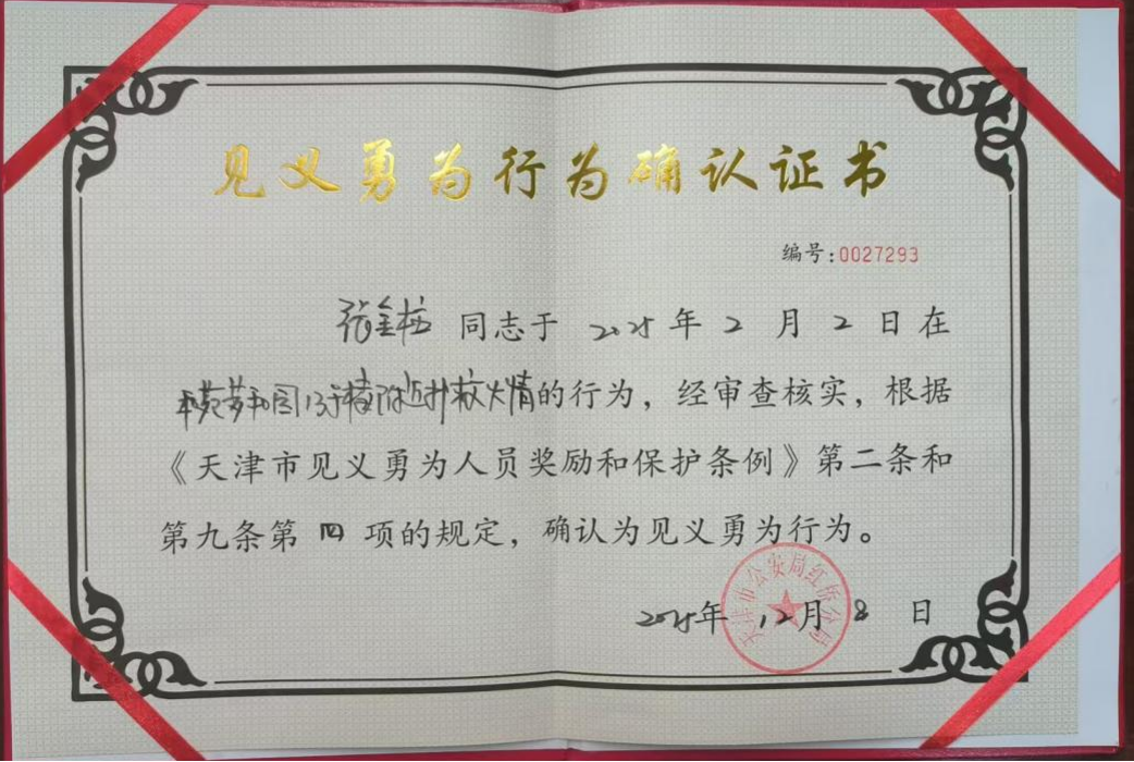 平凡岗位有担当,危急时刻显英雄。2026年1月29日,一则振奋人心的消息传来:华盾保安驻红桥区和苑梦和园小区保安员宋金良、张金柱两位同志的救火行为被正式认定为见义勇为,并被授予见义勇为证书,这份荣誉,是对他们危急时刻挺身而出、不顾安危守护群众财产的最高肯定,更是对平凡人善举的最好嘉奖。