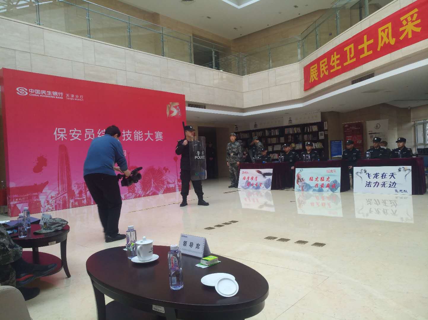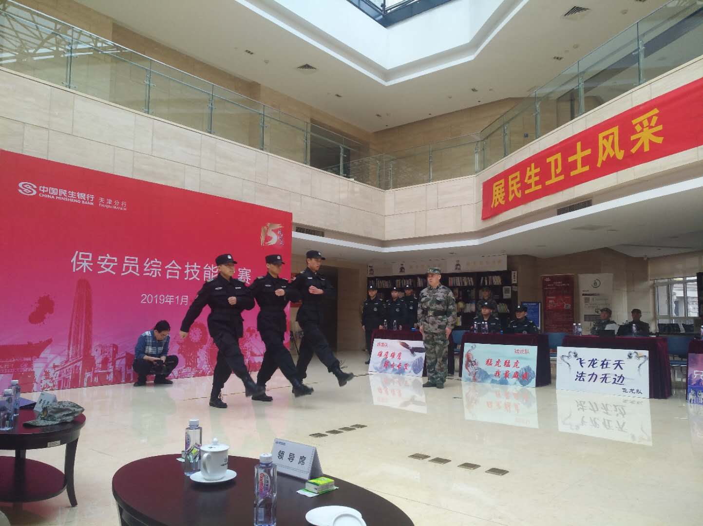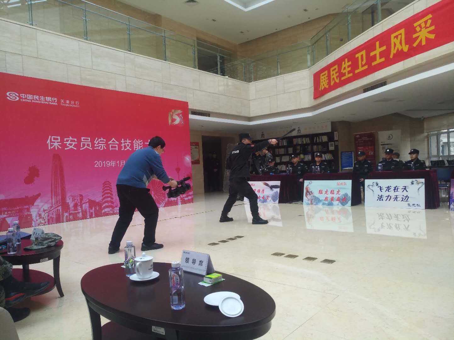 进一步提高保安队伍的整体素质,展示民生银行保安队伍的良好形象,激励广大保安人员积极自觉地参加保安业务知识的学习和保安业务技能的实践,我司联合民生银行特举办此次比赛。 比赛分为军体技能大比武和保安业务知识抢答赛两个部分。业务知识抢答赛内容涉及《治安管理法》、《劳动法》、《合同法》、《保安服务管理条例》等。比赛过程中,选手们回答得井井有条,充分展现了我行保安的过硬业务技能。期间,我司保安参赛队员还为观众表演了打盾牌术、队列考核。 通过此次技能实践,进一步检验了保安员的训练水平,增强了实战意识,进一步提高了保安员的业务知识和实战应用能力,为今后工作安全有序开展打下了坚实基础。